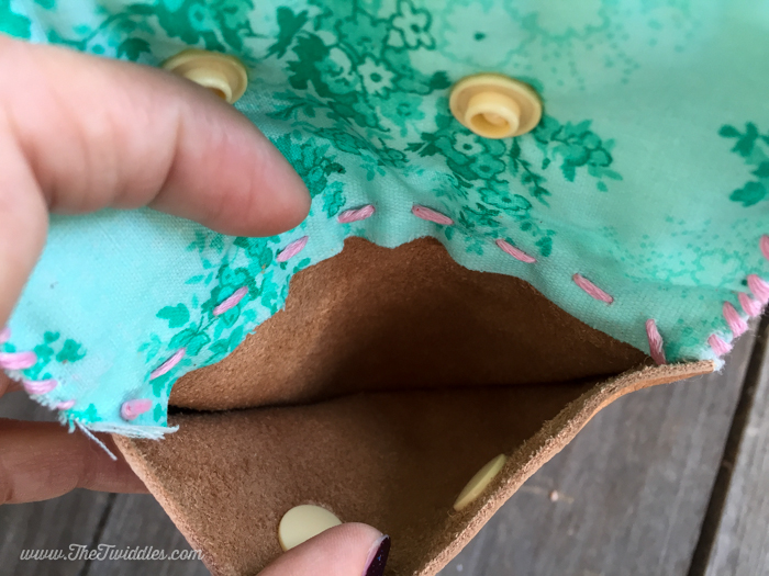 Light Brown Leather w/Teal flower Fabric